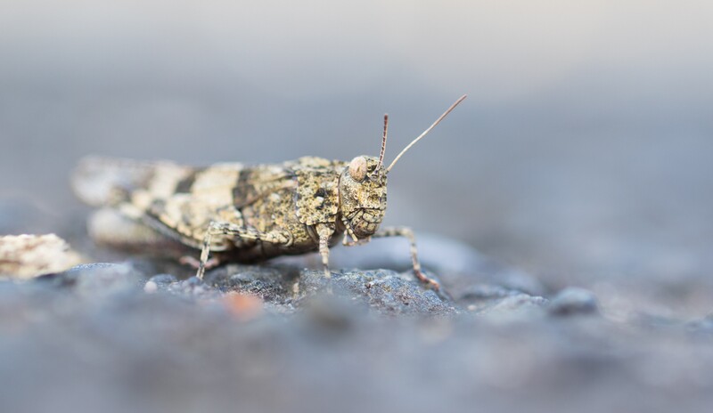 Heute möchten wir euch ein Tier aus dem Insektenreich vorstellen: die Blauflügelige Ödlandschrecke (Oedipoda caerulescens). Mit ihrer graubraunen Tarnfärbung ist sie auf den steinigen Untergründen unserer Betriebe so gut wie unsichtbar und fällt erst beim Auffliegen durch die leuchtend blaue Farbe ihrer Hinterflügel auf.